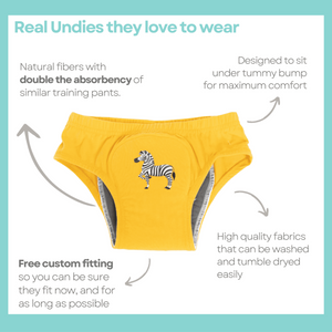 The most absorbent 'real undies' style training pants in NZ! Our beautifully 'simple to use' training pants take all the stress out of daytime training.